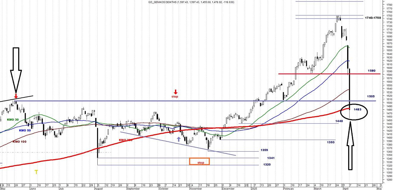 Ένα περίπου χρόνο αργότερα και με αφορμή τον πόλεμο των δασμών, το ελληνικό χρηματιστήριο επέστρεψε σε δύο πολύ σημαντικά τεχνικά όρια. Το πρώτο είναι η κορυφή των 1505 μονάδων που δημιουργήθηκε αρχές Μαΐου 2024 και το δεύτερο και ίσως πιο σημαντικό, ο ΚΜΟ-200 ημερών ο οποίος περνάει από τις 1483...