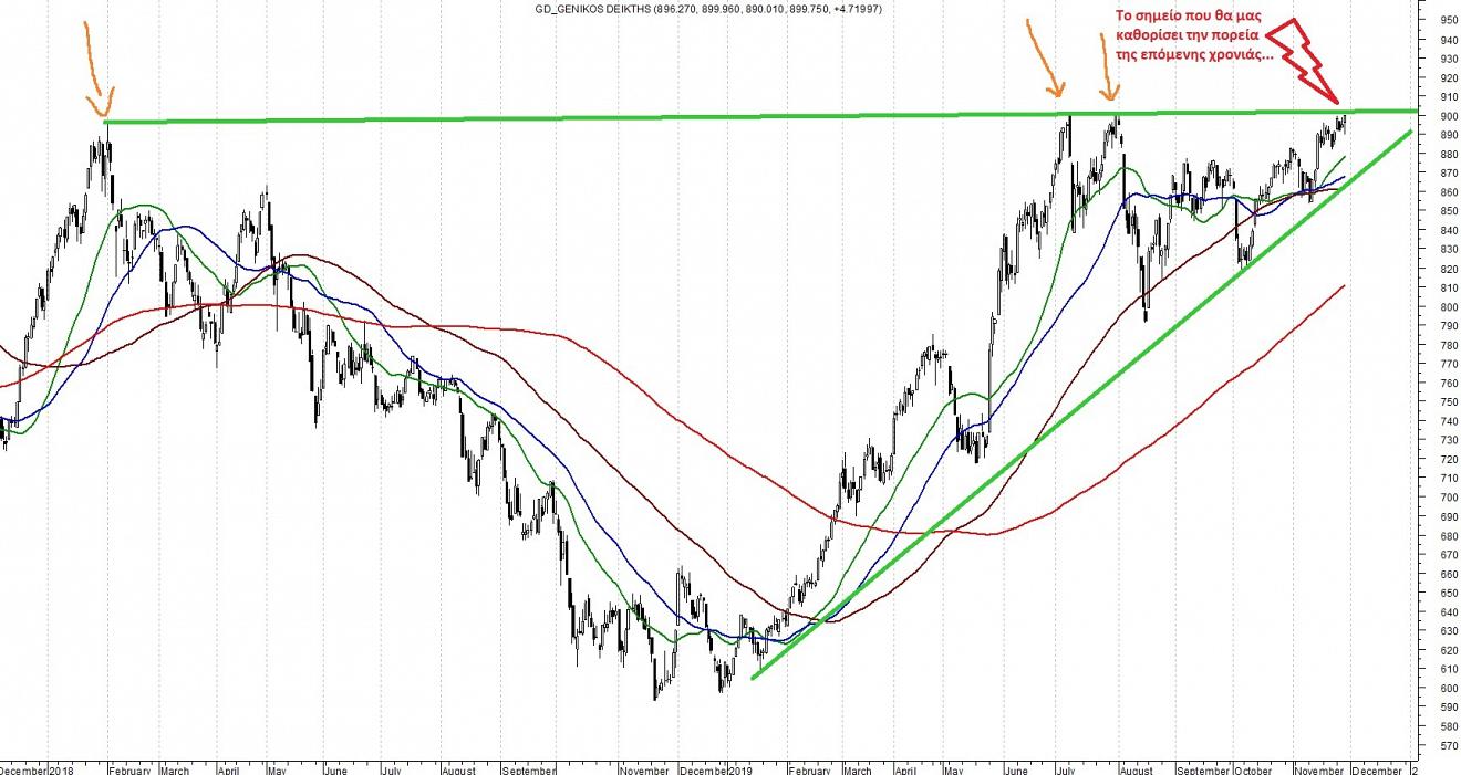 Κάτι ανάλογο ισχύει και στην περίπτωση του ΓΔ, ο οποίος μετά τα αλλεπάλληλα χτυπήματα στις 900 μονάδες, θα προσπαθήσει για άλλη μια μέρα σήμερα, να διασπάσει ανοδικά το όριο αυτό.