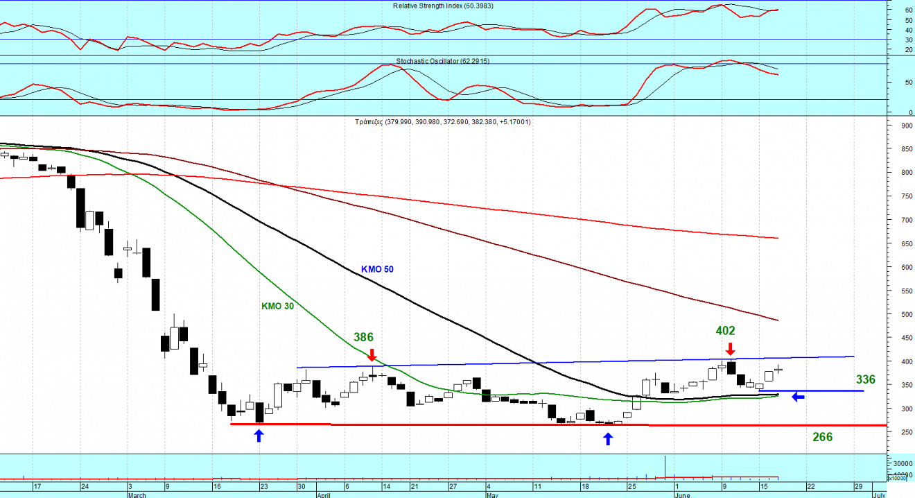 Το επίπεδο αυτό κρίνεται πλέον ιδιαίτερα κρίσιμο, καθώς υποχώρηση του τραπεζικού δείκτη κάτω από αυτό το νούμερο, θα μας δώσει το πρώτο δυνατό σήμα πώλησης και το σημείο στο οποίο αλλάζει ξανά η τάση του συγκεκριμένου δείκτη από ανοδική σε πτωτική.