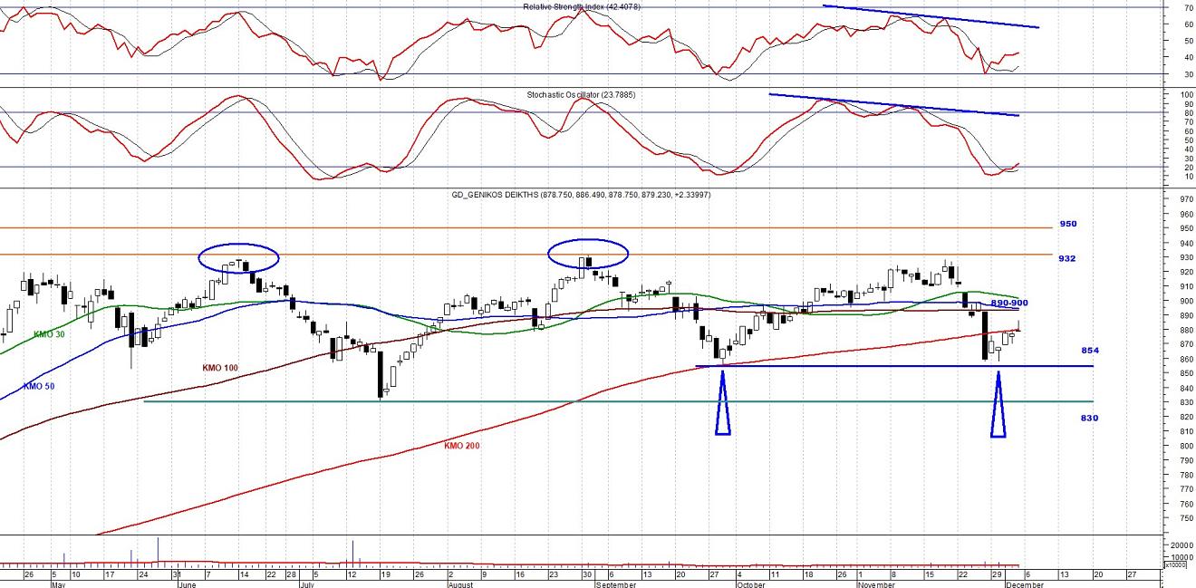 Διατηρούμε το stop μας στην πτωτική διάσπαση των 854 μονάδων.