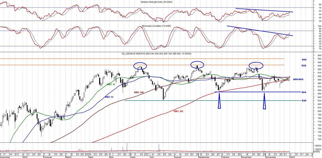 προσπαθεί να διασπάσει ξανά ανοδικά τις 900 μονάδες, στοχεύοντας ξανά προς τα υψηλά των 920-930 μονάδων.