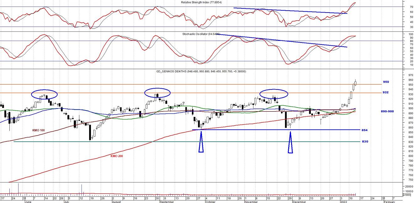 Αν όμως το χρηματιστήριο συνεχίσει το ανοδικό του κύμα και δει υψηλότερα νούμερα (ανάμεσα στο 980-1000), τότε το μέγιστο διορθωτικό κύμα θα θέλαμε να τελειώσει πάνω από τις 950 μονάδες. Εδώ να υπενθυμίσω ότι οι 950 μονάδες αποτελούν την κορυφή προ πανδημίας, αρχές του 2020.