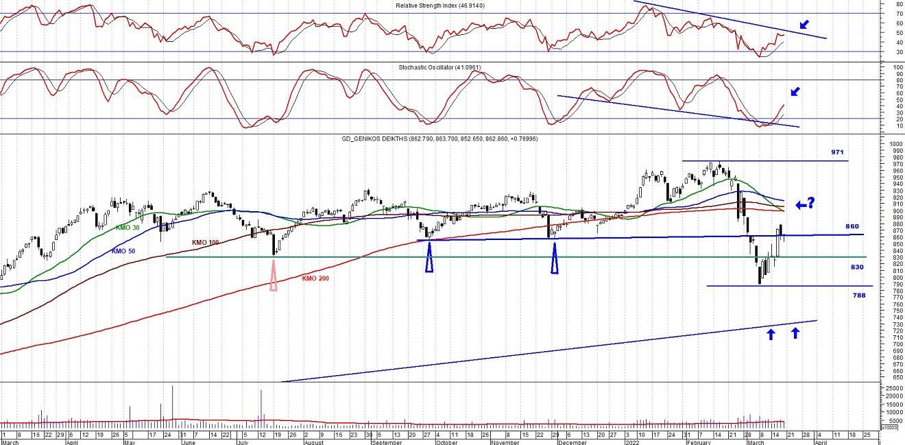 Ο ΓΔ υπό κανονικές συνθήκες (όσο μπορούν οι συνθήκες να είναι κανονικές βέβαια), ενδέχεται την τρέχουσα εβδομάδα να συνεχίσει την βραχυπρόθεσμη αντιδραστική του κίνηση προς την περιοχή των 880-900 μονάδων.