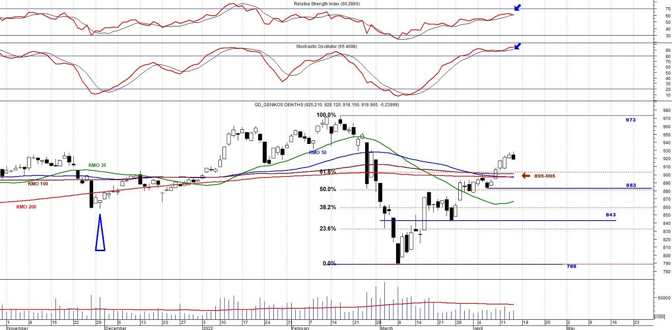 Οι 895-905 μονάδες αποτελούν μονόδρομο διακράτησης της ανοδικής ορμής, καθώς οποιαδήποτε επαναφορά κάτω από αυτές ενδέχεται να μας βάλει σε μπελάδες. Ειδικά η επαναφορά κάτω από τις 883 μονάδες θα μπορούσε να ανατρέψει ξανά την ανοδική τάση, οδηγώντας μας σε πτωτικά μονοπάτια.