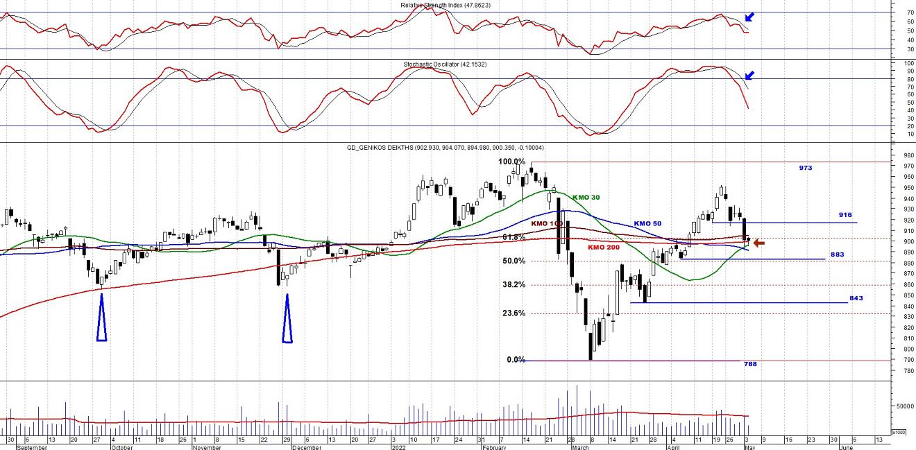 Στο τελευταίο σχόλιο αγοράς είχε αναφερθεί ότι στην περίπτωση που ακόμα και αν χαθούν οι 916 μονάδες, υπάρχει το όριο των 900 μονάδων που μπορεί να λειτουργήσει σαν μια ενδιάμεση στήριξη, πριν την επικίνδυνη προσέγγιση στις 883 μονάδες.