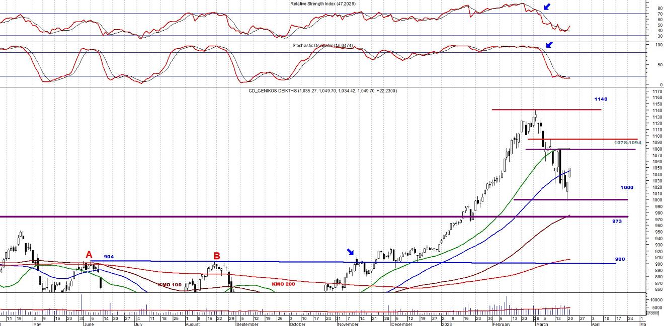 Mε ένα μικρό touch and go στην περιοχή των 1000 μονάδων, ο ΓΔ προσπαθεί με αξιώσεις να επανέλθει στην περιοχή των 1078-1094 μονάδων που μπορούμε να δούμε στο παρακάτω γράφημα.