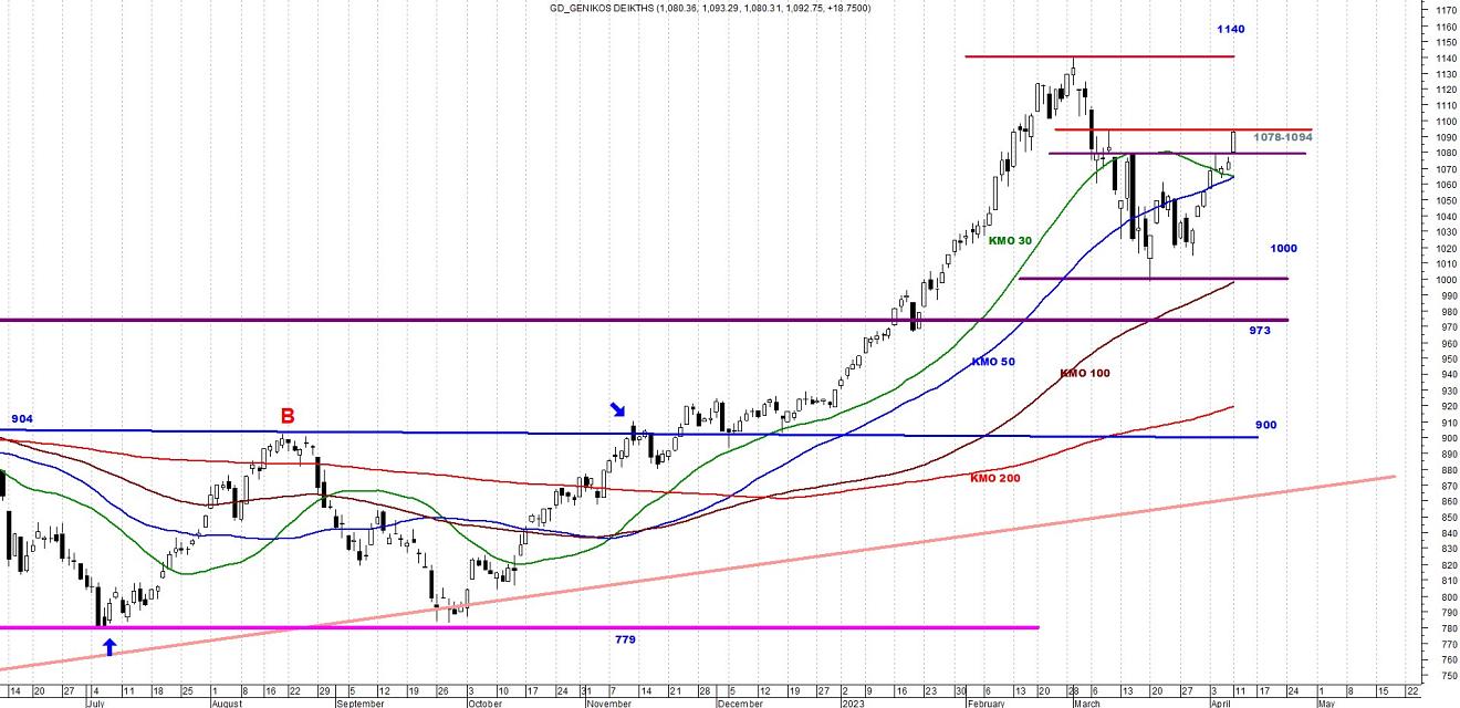 Για να γίνει όμως αυτό θα πρέπει να δούμε την σταθεροποίηση του ΓΔ πάνω από τις 1100 μονάδες, με τον δρόμο μετά να είναι ανοικτός για τις 1125 και 1140 μονάδες.