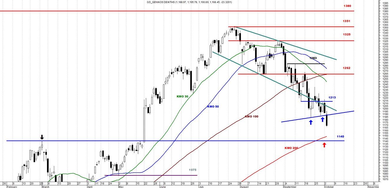 Τόσο το επίπεδο των 1140 μονάδων, όσο και ο ΚΜΟ-200 ημερών στις 1150 μονάδες, σχηματίζουν μια σημαντική ζώνη στήριξης. Αν χαθεί αυτή η περιοχή των 1140-1150 μονάδων, τότε θα μιλάμε πλέον για μια καθαρά πτωτική αγορά, ενεργοποιώντας νέα κύματα πωλήσεων, καθώς η περιοχή αυτή αποτελεί το μεγάλο stop για του μακροπρόθεσμους επενδυτές.