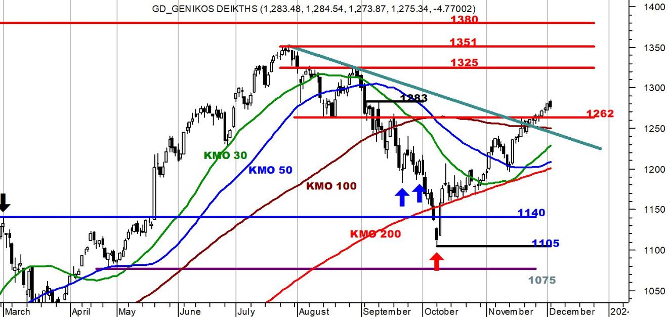 Νέο βραχυπρόθεσμο αγοραστικό σήμα με την ανοδική διάσπαση των 1283 μονάδων σε ημερήσιο κλείσιμο.