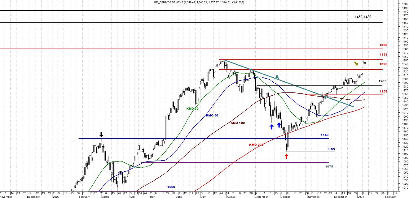 Ο ΓΔ με το χθεσινό του κλείσιμο βρίσκεται μια ανάσα από τα υψηλά των 1351 μονάδων.