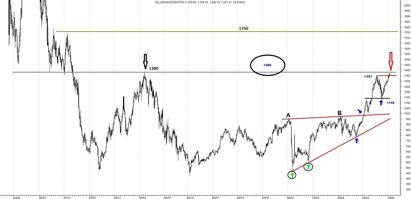 Πρόκειται λοιπόν για ένα κομβικό σημείο υψίστης διαγραμματικής σημασίας, καθώς η ανοδική του διάσπαση θα σηματοδοτήσει τη αρχή μιας νέας χρηματιστηριακής περιόδου για τον ΓΔ.