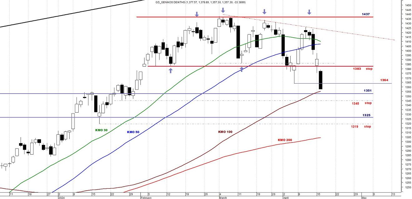 O ΓΔ πλέον πλησιάζει σε σημαντικές μεσοπρόθεσμες στηρίξεις. Η βραχυπρόθεσμη τάση είναι καθαρά πτωτική και μένει να δούμε αν θα αλλάξει και η μεσοπρόθεσμη τάση από ανοδική σε πτωτική.