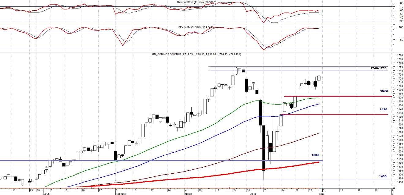 Σε τροχιά ανόδου προς τα προηγούμενα υψηλά βρίσκεται ο ΓΔ, απέχοντας μόνο 1-1,5% από την περιοχή των 1740-1750 μονάδων και από τα υψηλά 14 ετών.