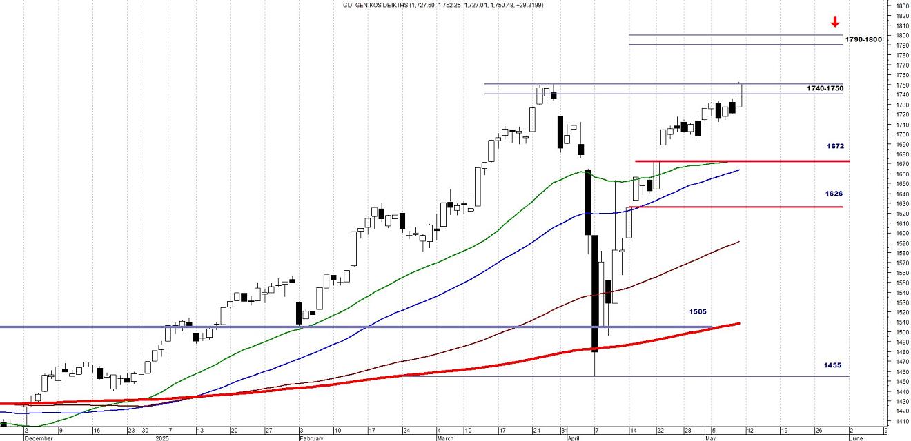Στο σχόλιο της προηγούμενης Δευτέρας είχε αναφερθεί ότι ο ΓΔ βρισκόταν σε τροχιά ανόδου προς τα προηγούμενα του υψηλά του, στην περιοχή των 1740-1750.