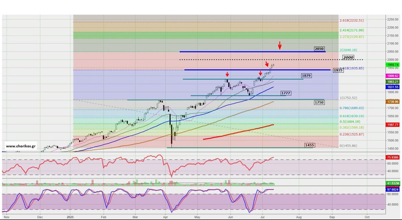Στόχος του ΓΔ για τις επόμενες μέρες, είναι η ανοδική διάσπαση των 2000 μονάδων. Στο επίπεδο αυτό δεν υπάρχει στην ουσία τεχνική αντίσταση, αλλά περισσότερο ψυχολογική, καθώς την προηγούμενη φορά που βρεθήκαμε σε τέτοια επίπεδα, ήταν περίπου την χρονιά 2010.