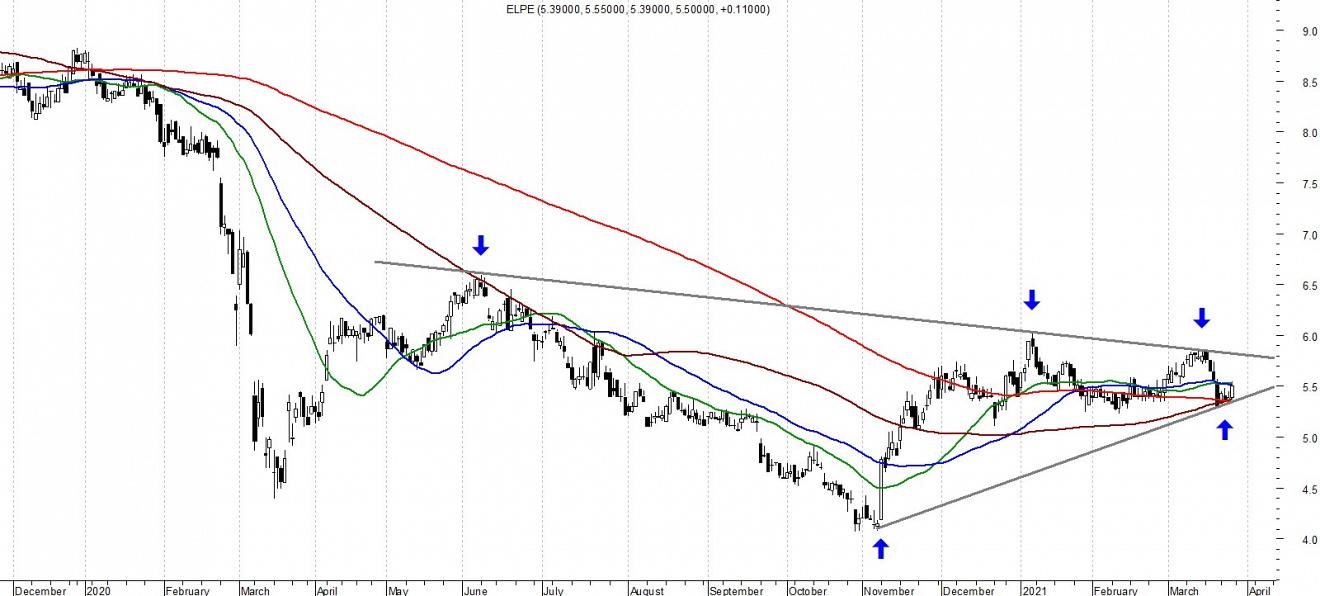 Η υπέρβαση της περιοχής 5,55-5,60 ευρώ, θα δώσει νέο ανοδικό αέρα στη μετοχή, καθώς στην περιοχή αυτή συναντάμε τους κινητούς μέσους των 30 και 50 συνεδριάσεων. Πάνω από το 5,80, δείχνει να αλλάζει η βραχυπρόθεσμη τάση της μετοχής, δείχνοντας τον πρώτο στόχο των 6,50 ευρώ.