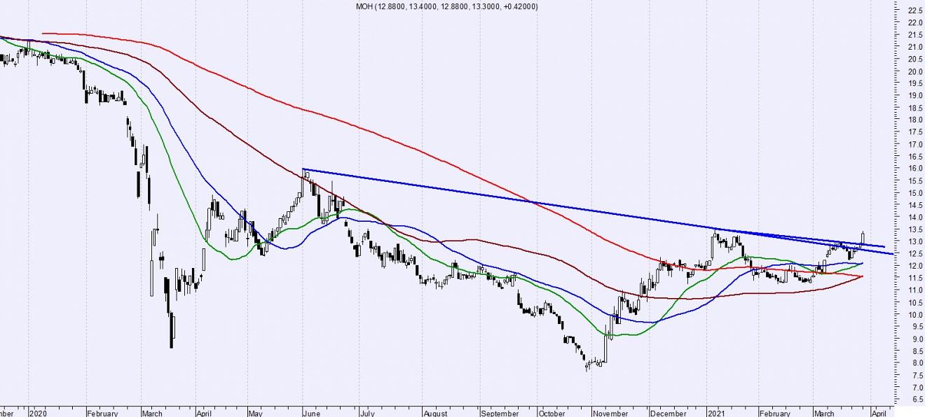 Σε ανοδική τροχιά και η μετοχή της ΜΟΗ από το χτεσινό κλείσιμο και μετά, καθώς το νέο υψηλότερο κλείσιμο αφήνει πολλές υπόνοιες.