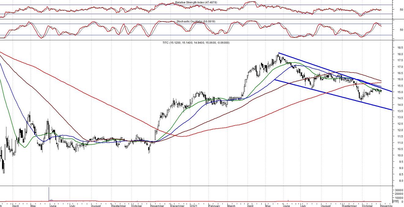 Χωρίς ιδιαίτερο τεχνικό ενδιαφέρον η μετοχή της ΤΙΤΑΝ, καθώς το πλαγιοκαθοδικό κανάλι στο οποίο έχει εισέλθει, είναι ενεργό, οδηγώντας τη μετοχή προς χαμηλότερα νούμερα.