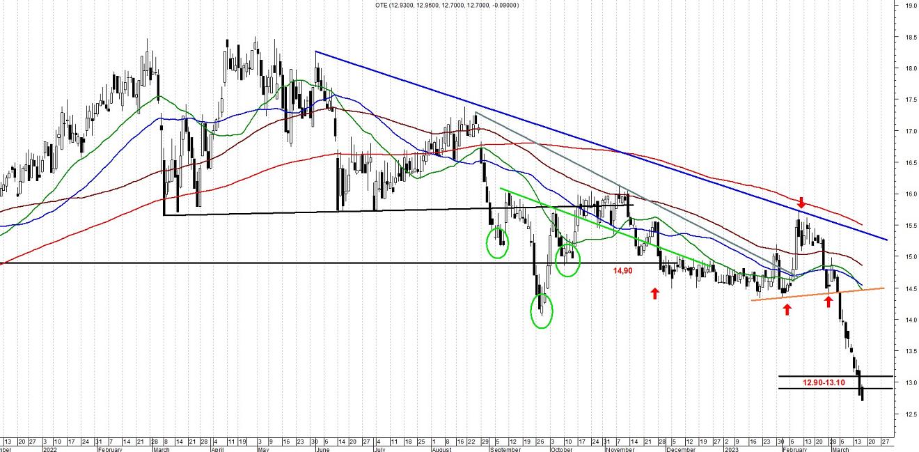 Η περιοχή 12,90-13,10 ενδέχεται για την ώρα να αποτελέσει την πρώτη προσπάθεια των αγοραστών να σταματήσουν την μεγάλη κατρακύλα στην οποία έχει μπει η μετοχή.