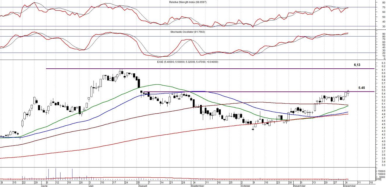 Η υπέρβαση και η παραμονή πάνω από το 5,45 θα σηματοδοτήσει την αλλαγή επιπέδου για την μετοχή.